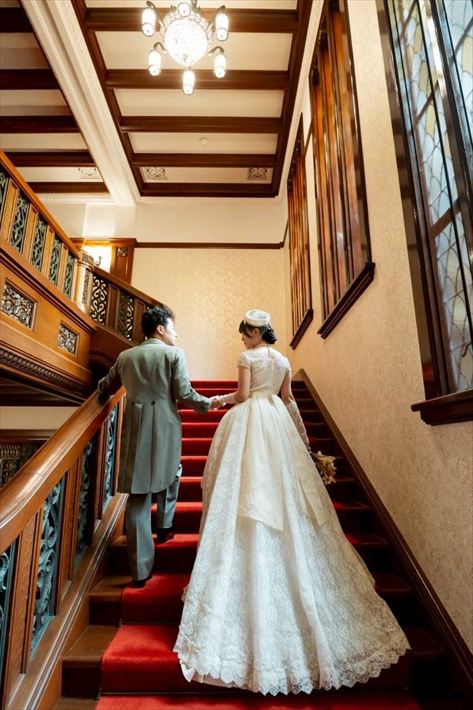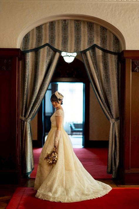 ヴィンテージドレスにトーク帽を被って洋館でウエディングフォトを撮るのが希望で東京の写真屋さんで決めたところレンタルドレスショップがドリアン・グレイ様でした。