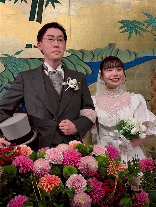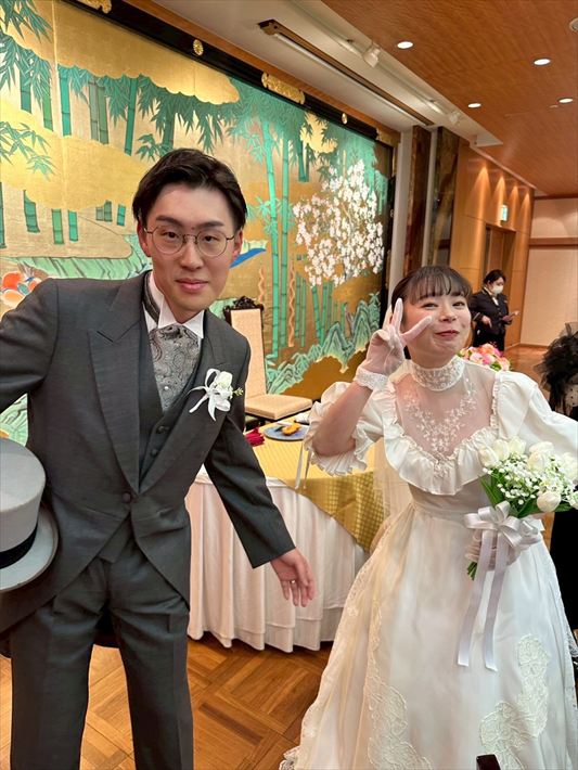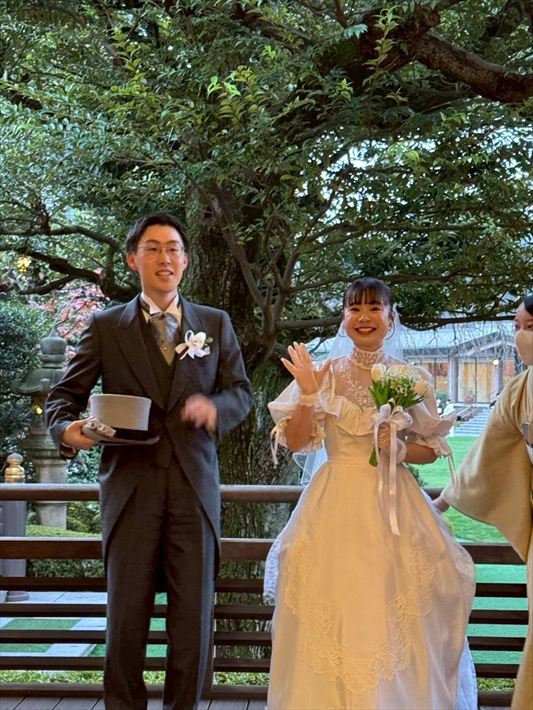 結婚式当日も家族・友人からとても好評で、「すごい似合う!オーダーしたの!?」「私もそのドレス着たい!かわいい!」など、夫婦共々たくさんのお褒めの言葉をかけてもらいました。